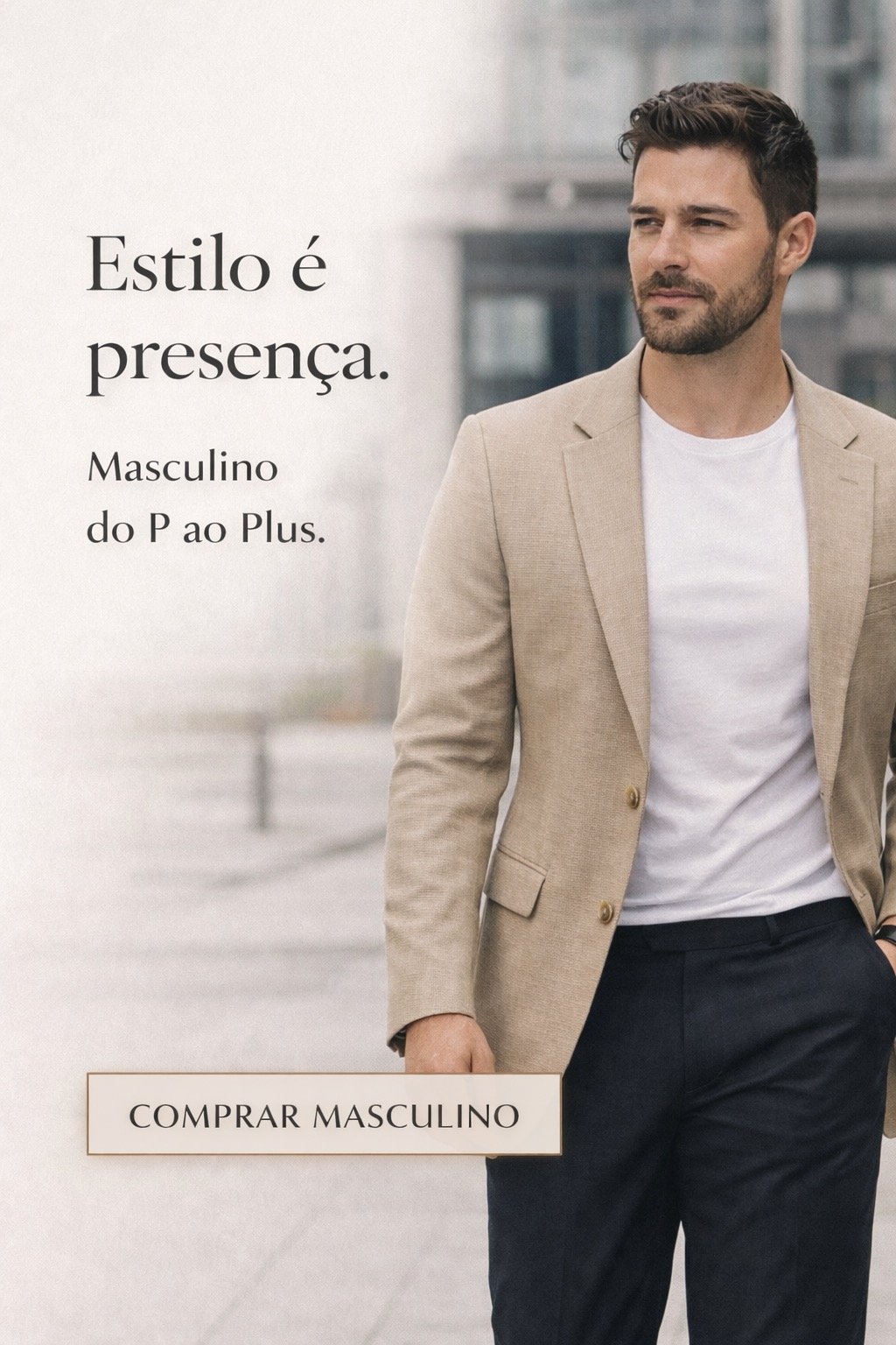 Seja qual for o seu estilo ou o tamanho que veste, aqui você tem espaço. Nossas coleções femininas e masculinas plus size são pensadas pra valorizar cada detalhe do seu corpo com conforto, estilo e personalidade.
