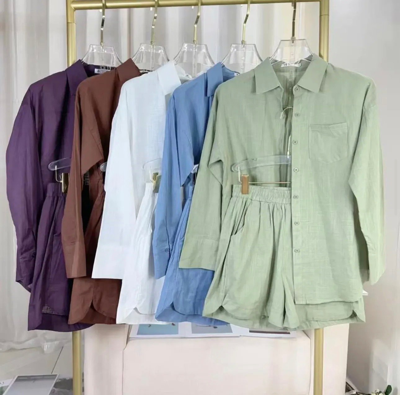 Conjunto Feminino Camisa e Shorts – Algodão Premium Estilo Linho