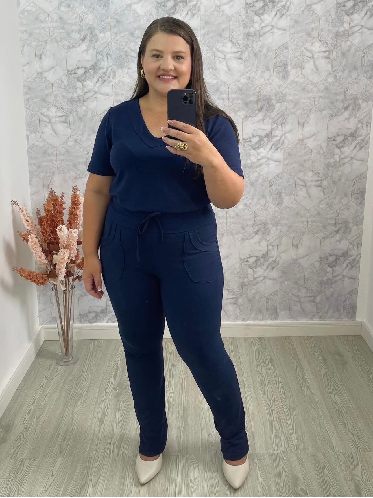 Conjunto moletinho de calça e blusa manga curta, perfeito para o dia a dia. Super confortável e casual, ideal para aqueles momentos em que você quer estar bem vestida, mas sem abrir mão do conforto. A calça tem um corte moderno, e a blusa de manga curta garante frescor nos dias mais quentes. Um look simples, mas cheio de estilo!