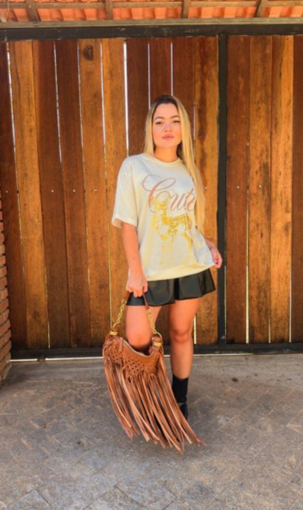 Seu design versátil permite combinar facilmente com shorts, saias, jeans ou peças em couro, criando looks estilosos para diversas ocasiões.